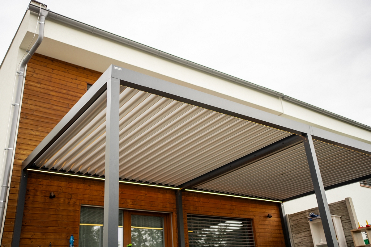 Aluminiowa wiata na samochody Carport ARTOSI jest ponadczasową wiatą z innowacyjnym designem opracowaną z naciskiem na dokładność, jakość wykonania i możliwość indywidualnych adaptacji, która zapewni ochronę. Twojego pojazdu przed złą pogodą. Aluminiowa konstrukcja, która jest identyczna z konstrukcją pergoli bioklimatycznej ARTOSI, jest kryta nośną blachą trapezową (RAL 9006) lub poliwęglanem. Carport ARTOSI ma zintegrowane odprowadzenie wody wewnątrz konstrukcji bez konieczności dalszych zmian, z możliwością opcjonalnego oświetlenia LED umieszczonego na całym obwodzie, obsługiwanego czujnikiem ruchu lub z pomocą technologii IO. Wiata może być wyprodukowana również w wersji bez dachu (tylko słupki i rama obwodowa).